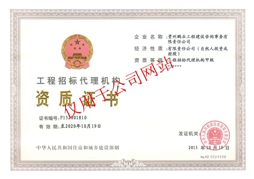 工程招標代理甲級、工程造價咨詢甲級、工程監(jiān)理甲級、中央投資項目招標代理甲級、政府采購代理甲級